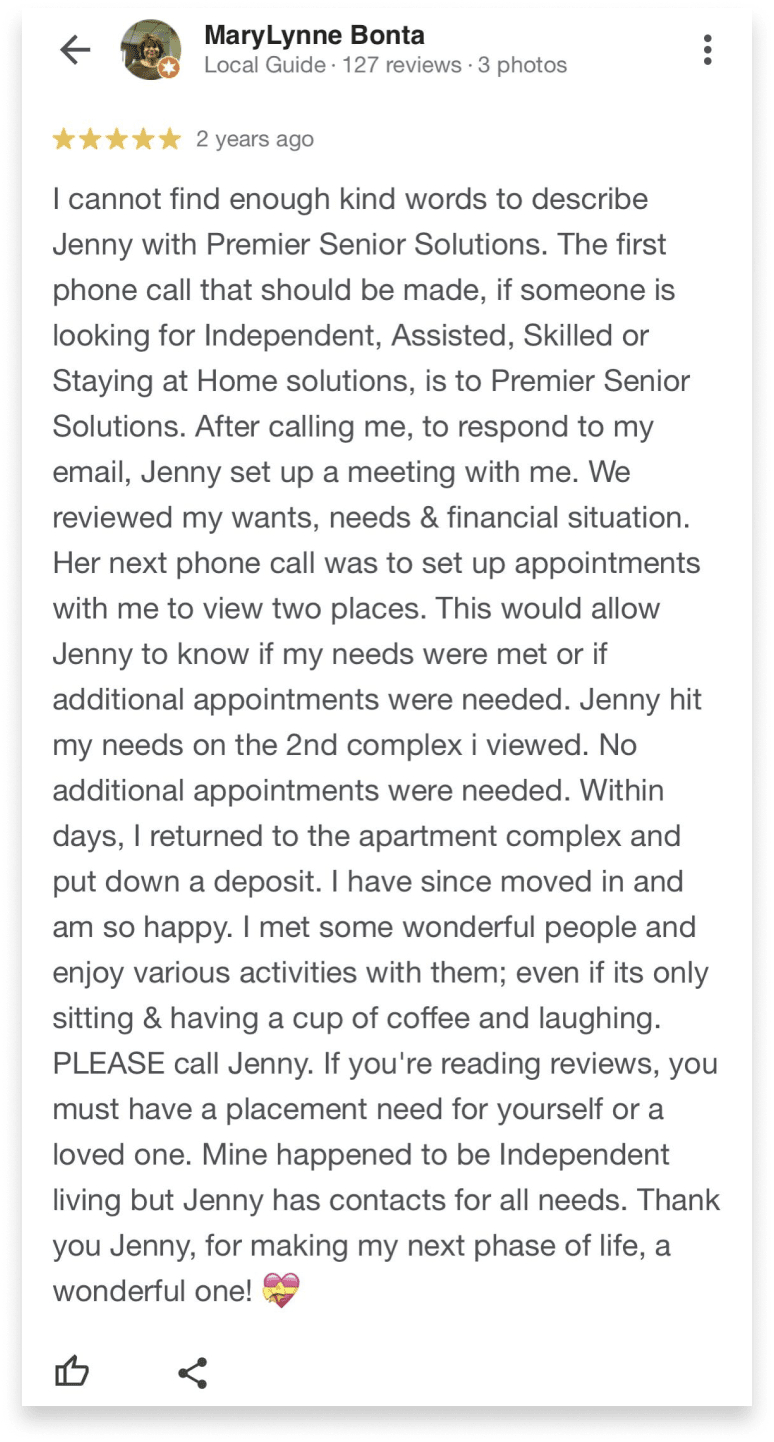 Despite the best intentions many of us have, trying to decipher options for your loved one is extremely overwhelming. You need unbiased assistance to make the best choices for your unique situation. Trying to juggle all of the information on your own is a full time job and not a guarantee that to be a perfect fit. The absolute worst scenario is to make decisions due to lack of planning or being led astray only to have to make harder decisions as a result.